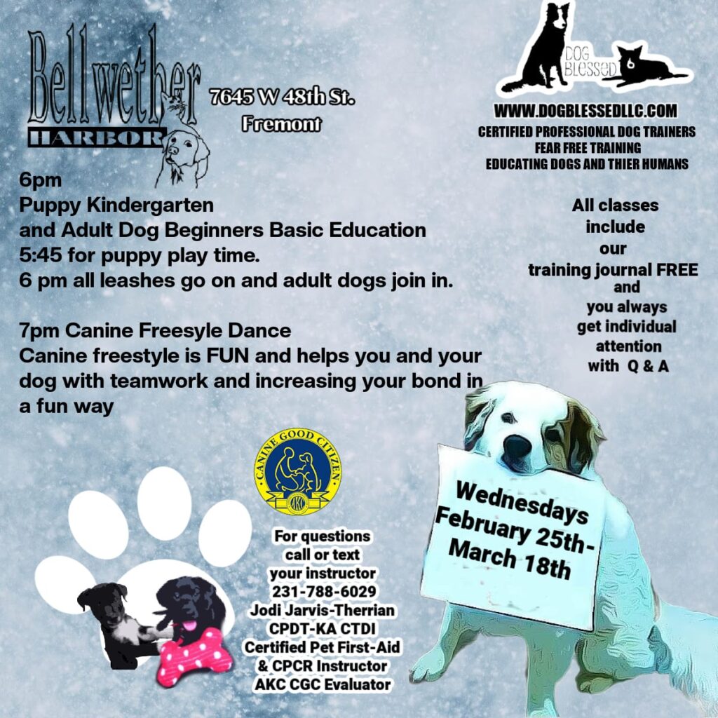 Upcoming Dog Training Classes Bellwether Harbor supports the human animal bond through education and training. Click here to sign up or click the image to sign up!